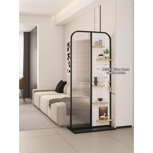 可移動免打孔洞洞板玻璃隔斷奶油風入戶正對門遮擋置物架收納屏風