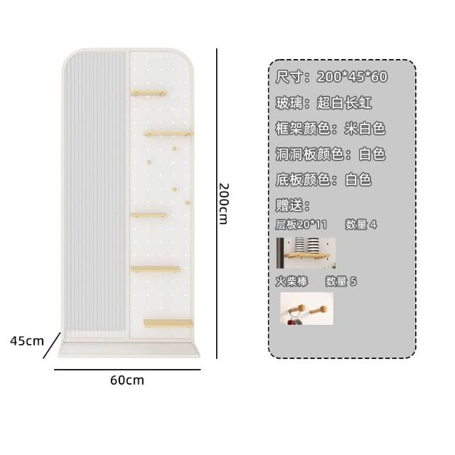 可移動免打孔洞洞板玻璃隔斷奶油風入戶正對門遮擋置物架收納屏風