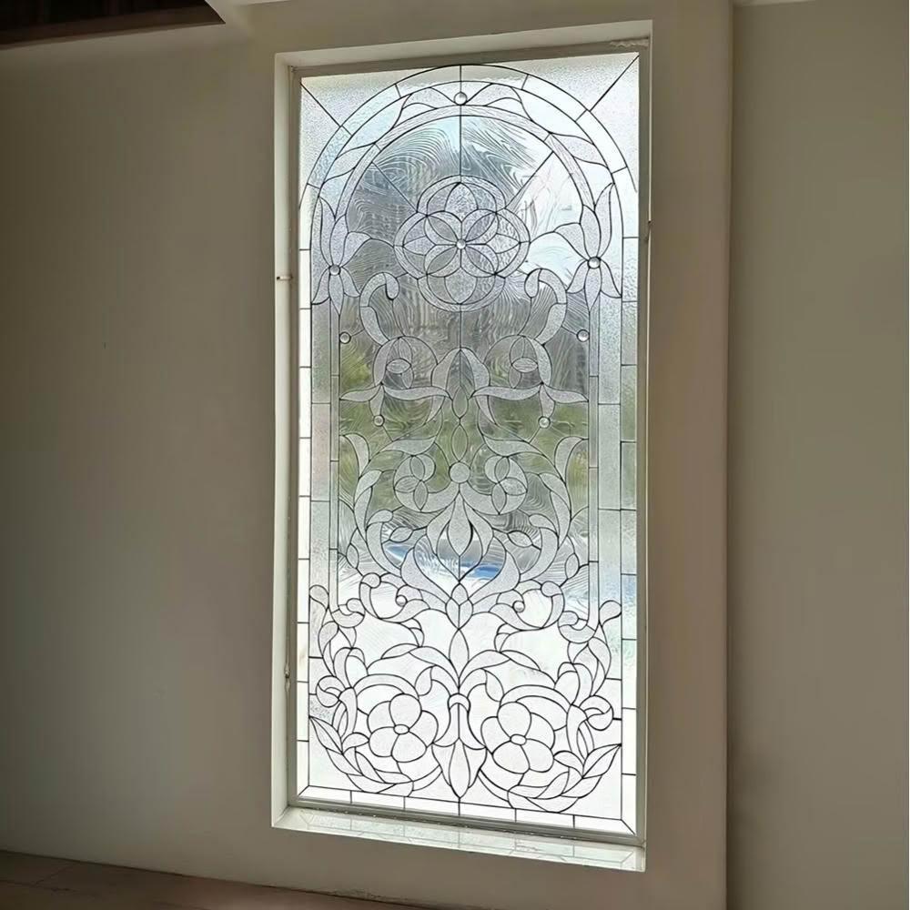 法式拱門玻璃隔斷屏風客廳入戶玄關走廊過道奶油風拱形假窗戶裝飾