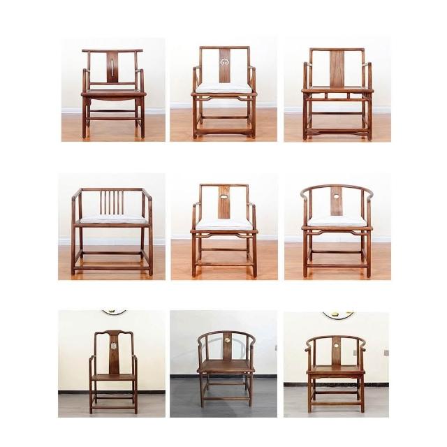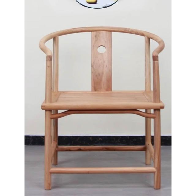 新中式北方老榆木圈椅圍茶椅實木茶几免漆燙蠟官帽桃心海棠打坐椅
