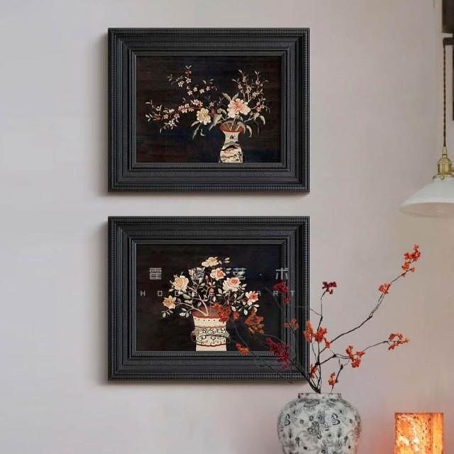 法式復古中國風客廳裝飾畫餐廳玄關臥室中古風花卉掛畫