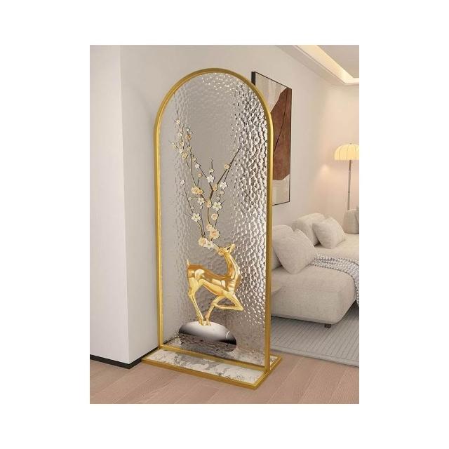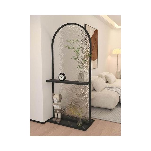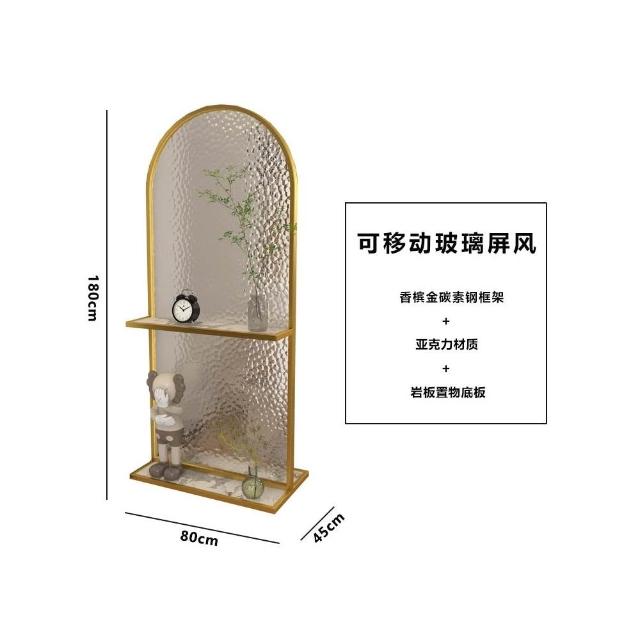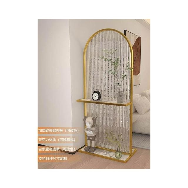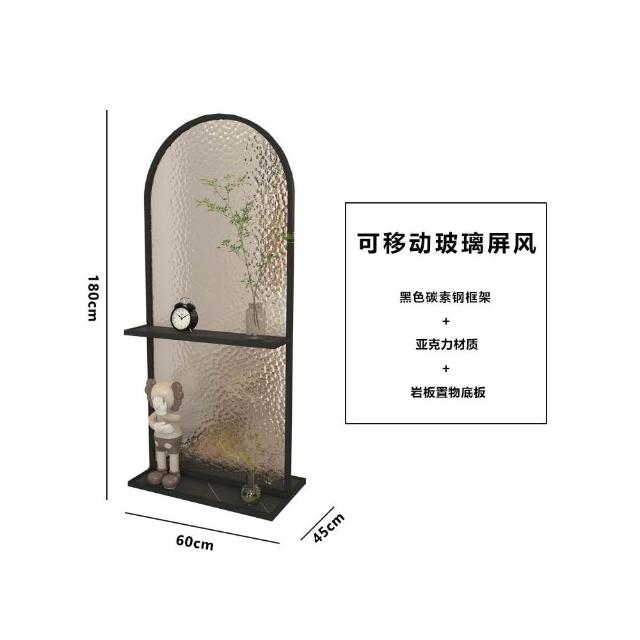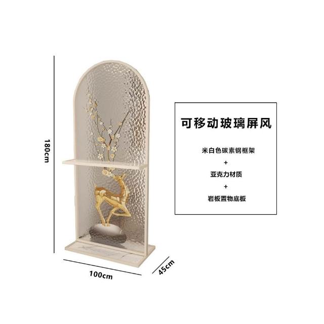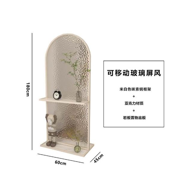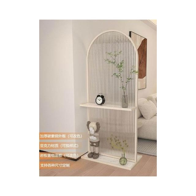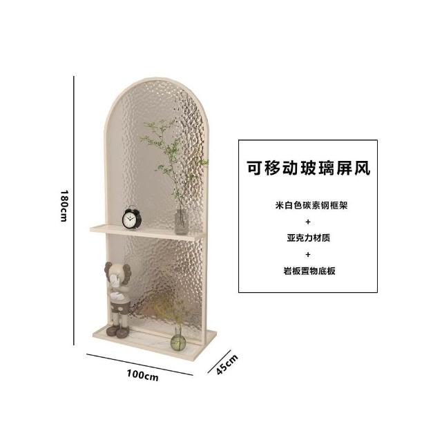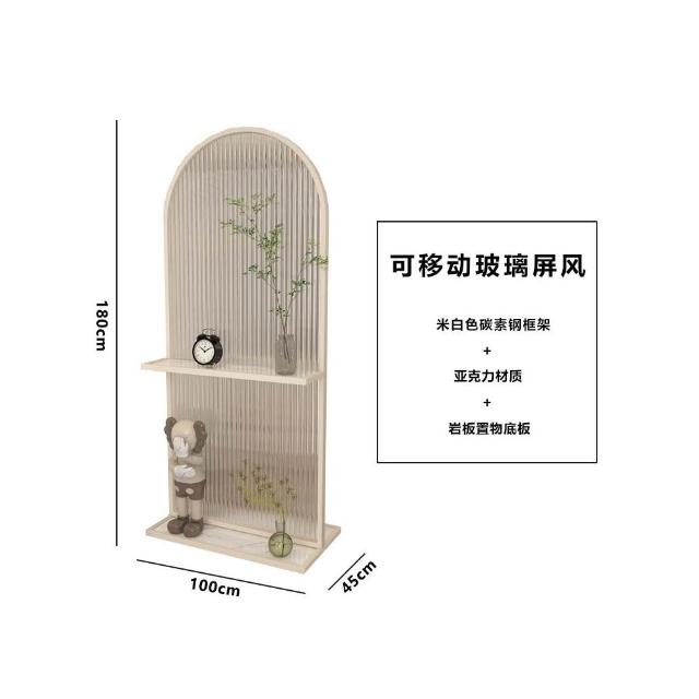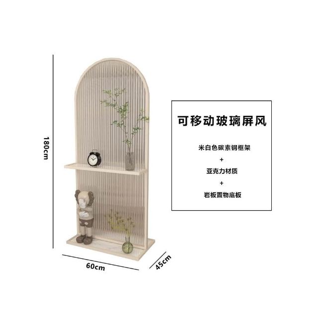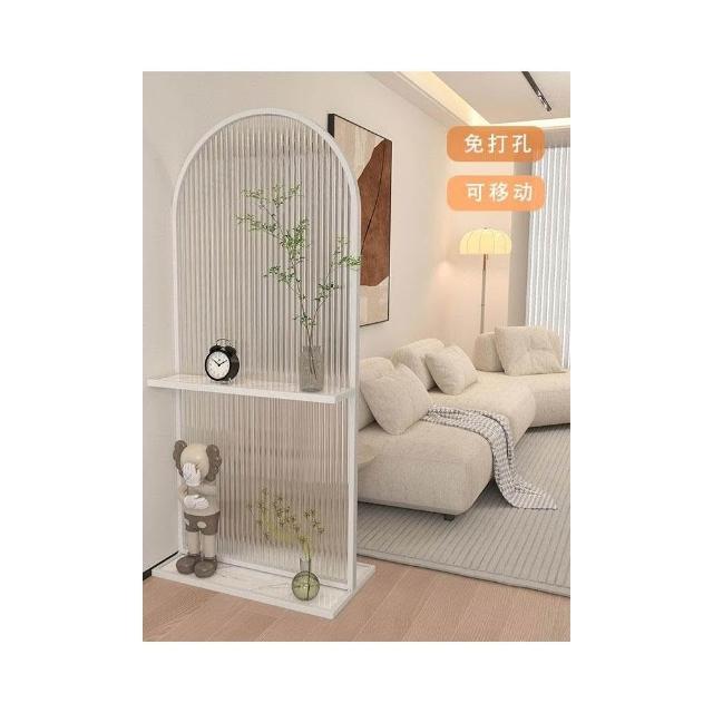 亞克力屏風可移動入戶門客廳免打孔隔斷奶油風長虹玻璃玄關置物架