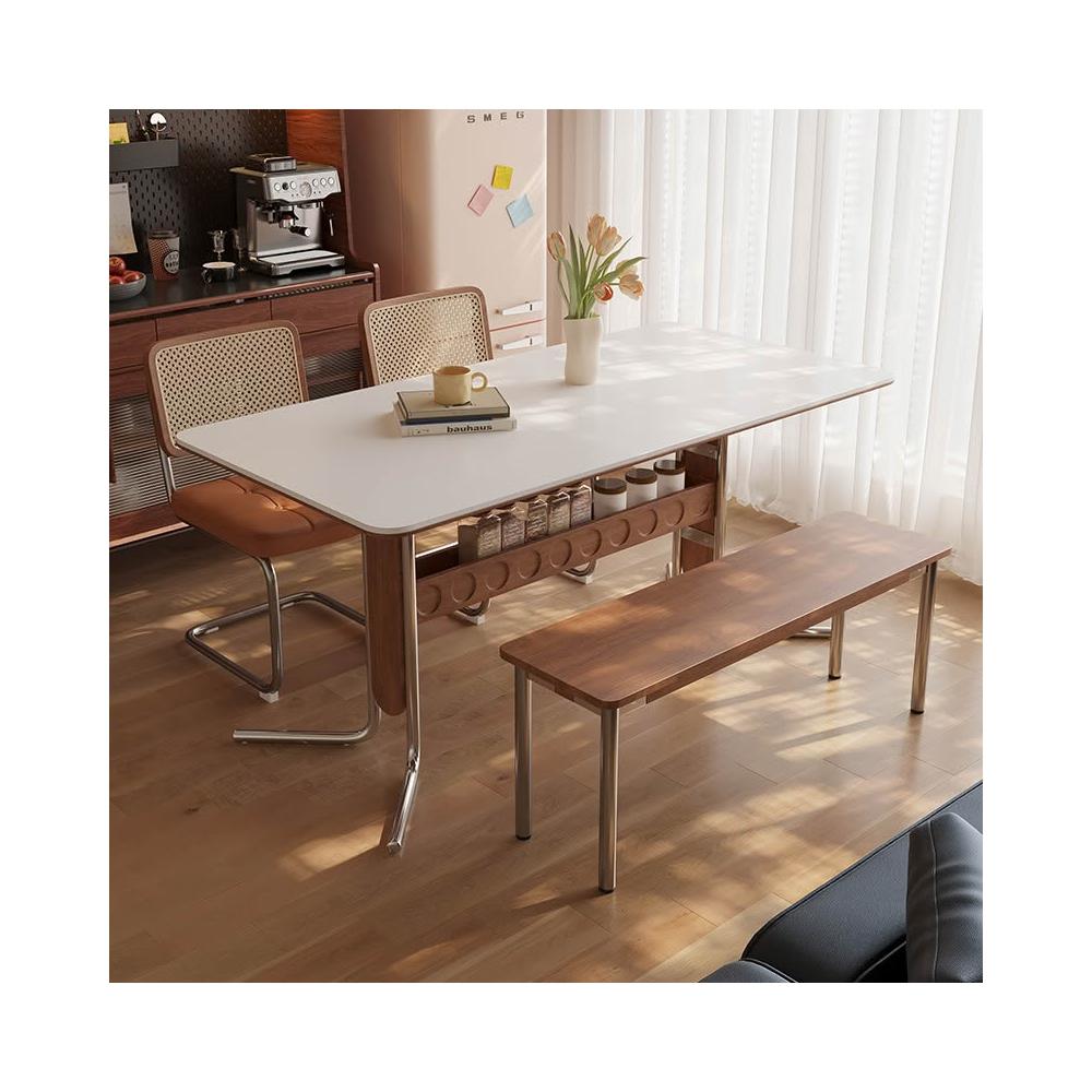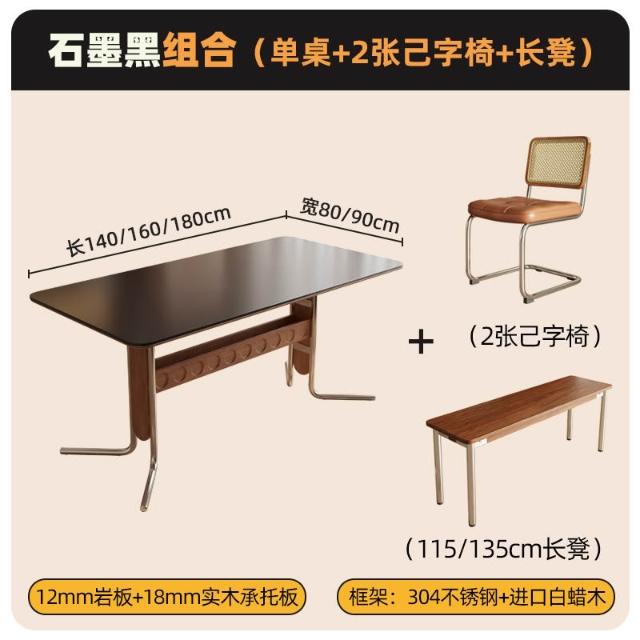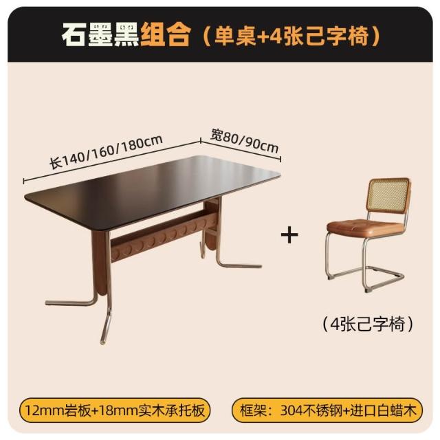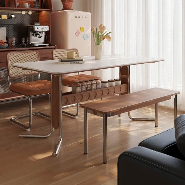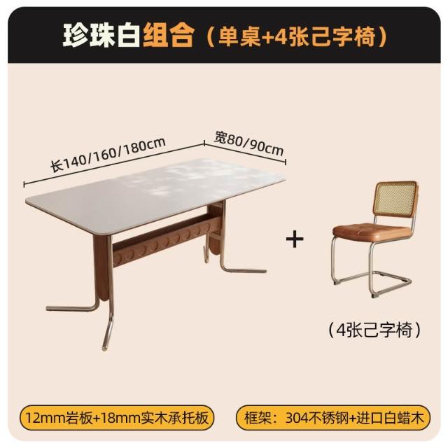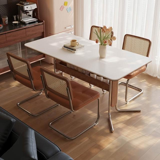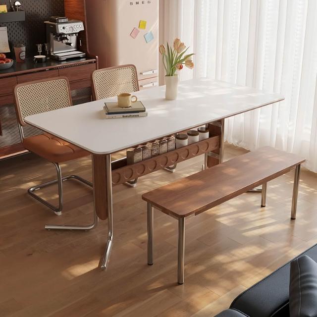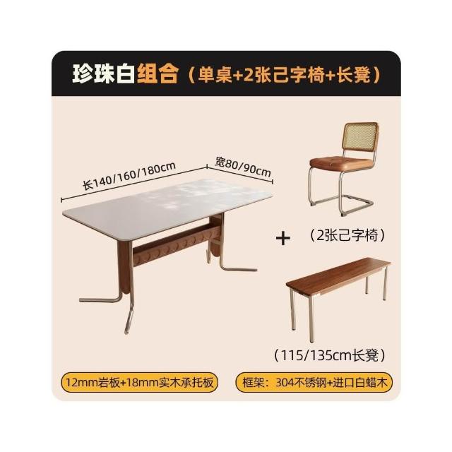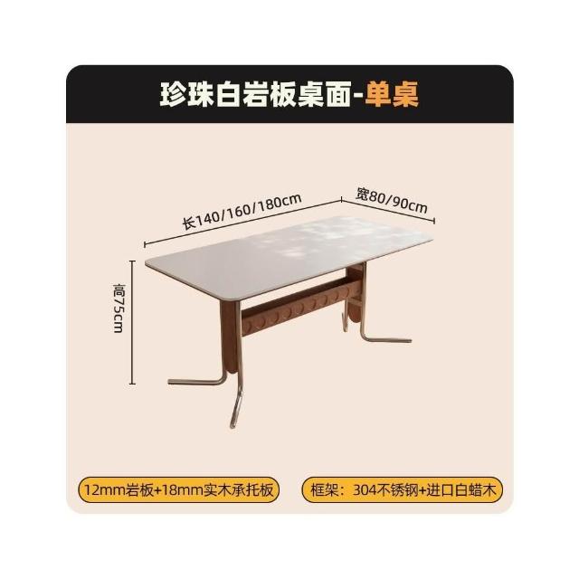 復古實木 中古風 岩板 餐桌 家用小戶型 現代簡約法式奶油風輕奢