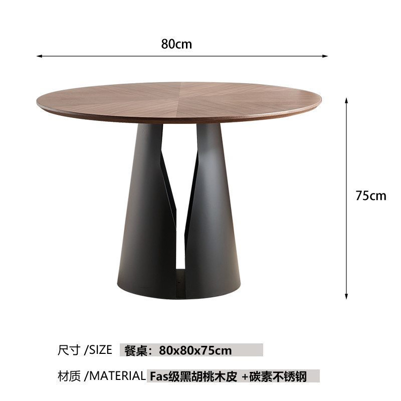 實木圓形餐桌 中古風 家用 黑胡桃拼花圓桌 極簡 小戶型 家用飯桌