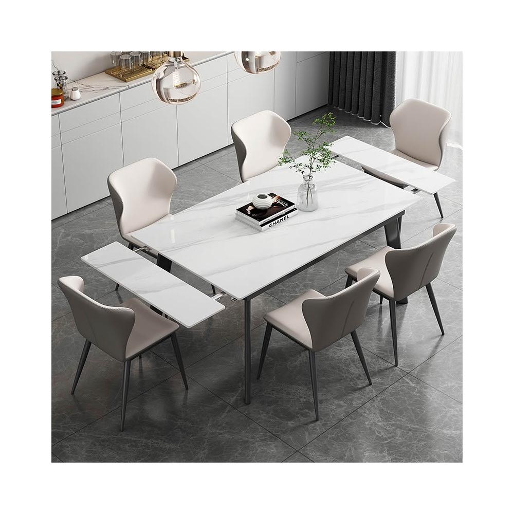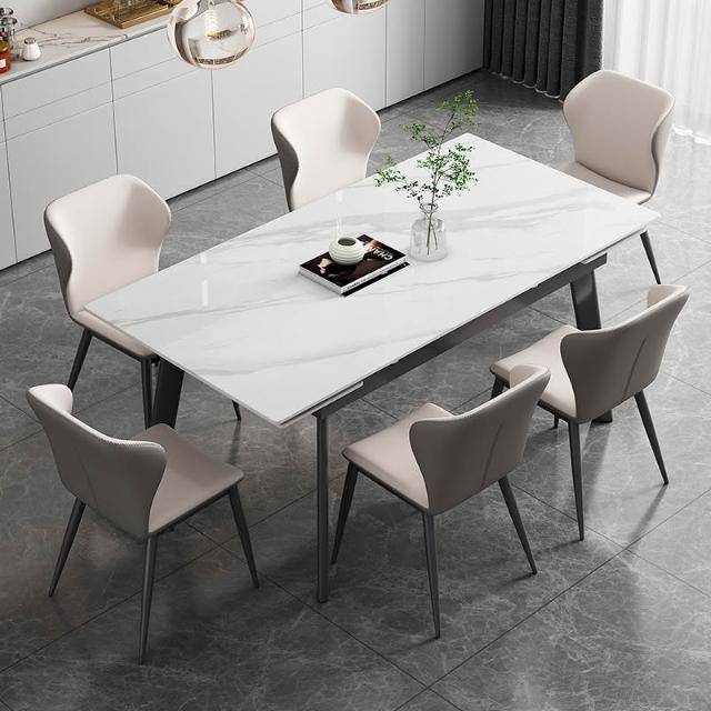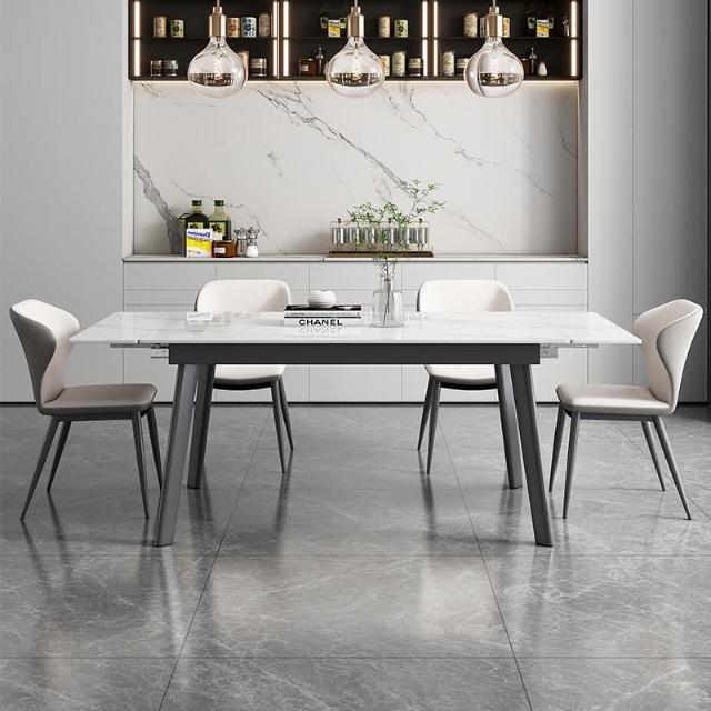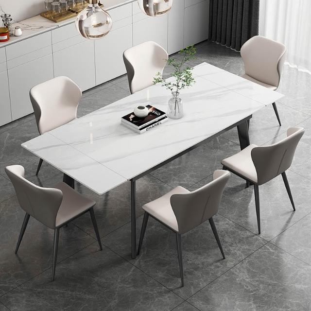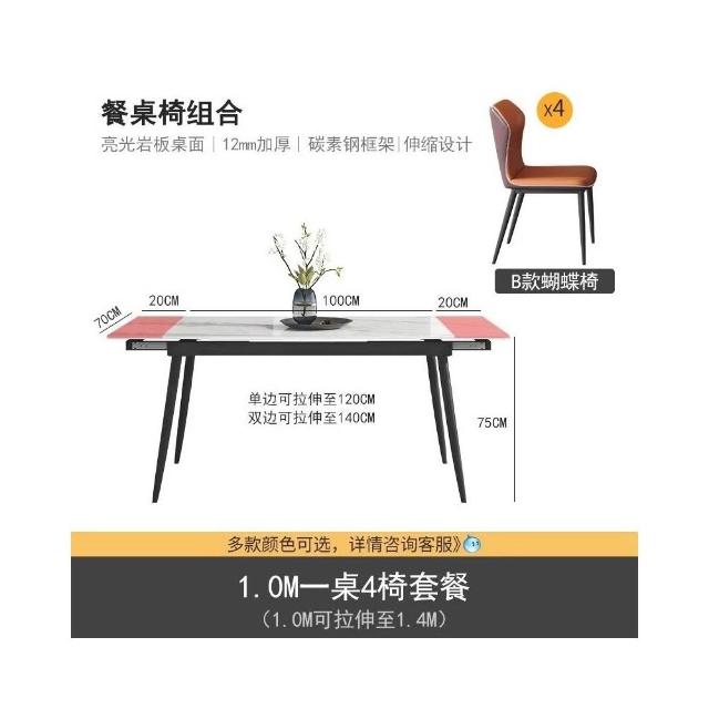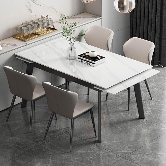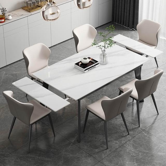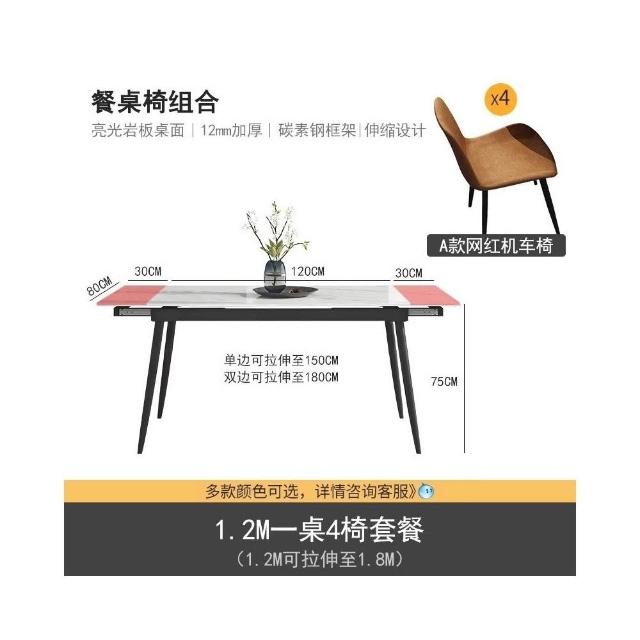 輕奢可伸縮折疊 岩板餐桌椅組合 現代簡約 家用小戶型 長方形岩板餐桌