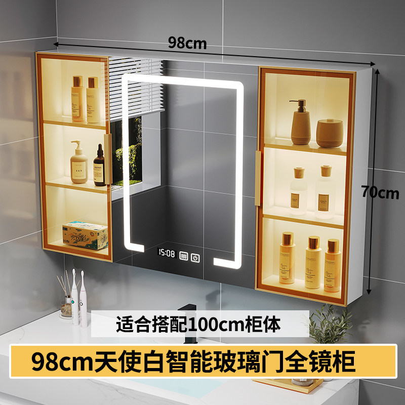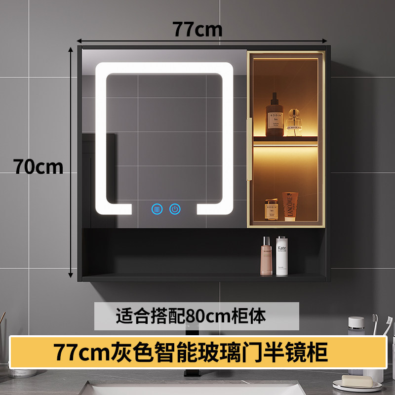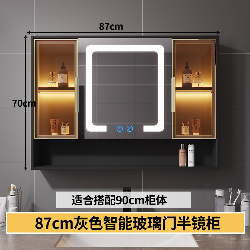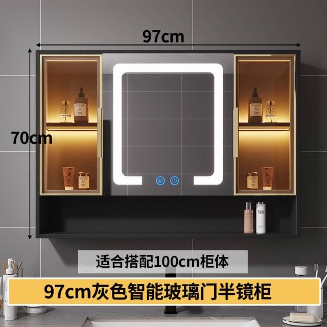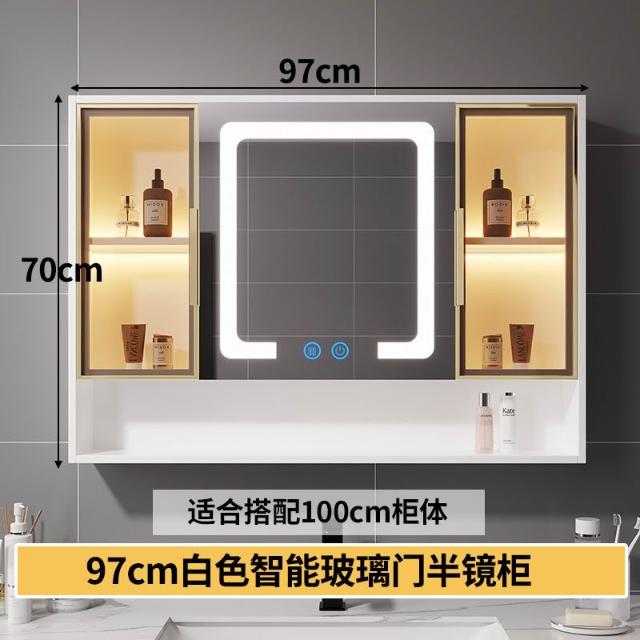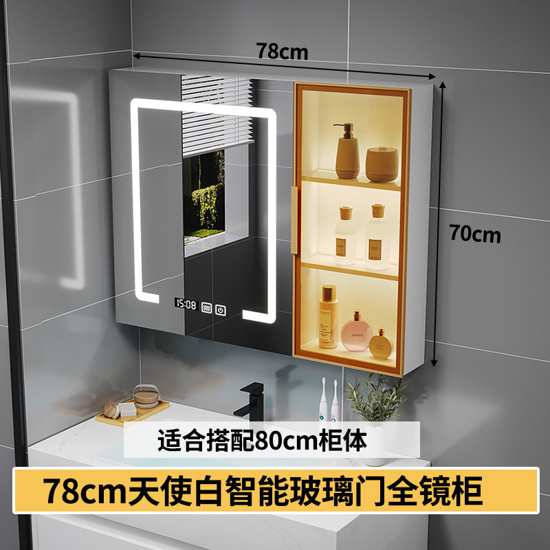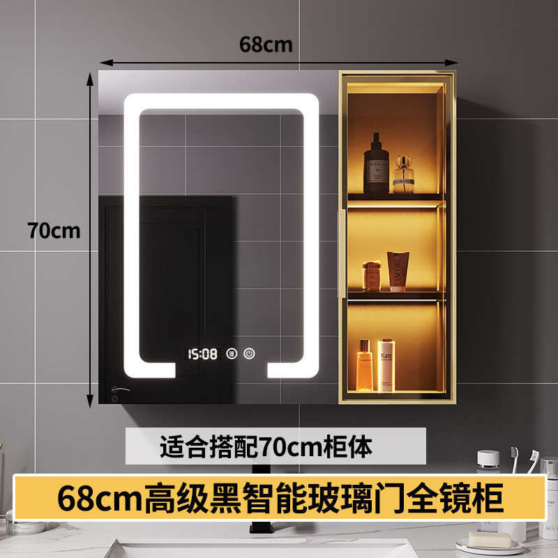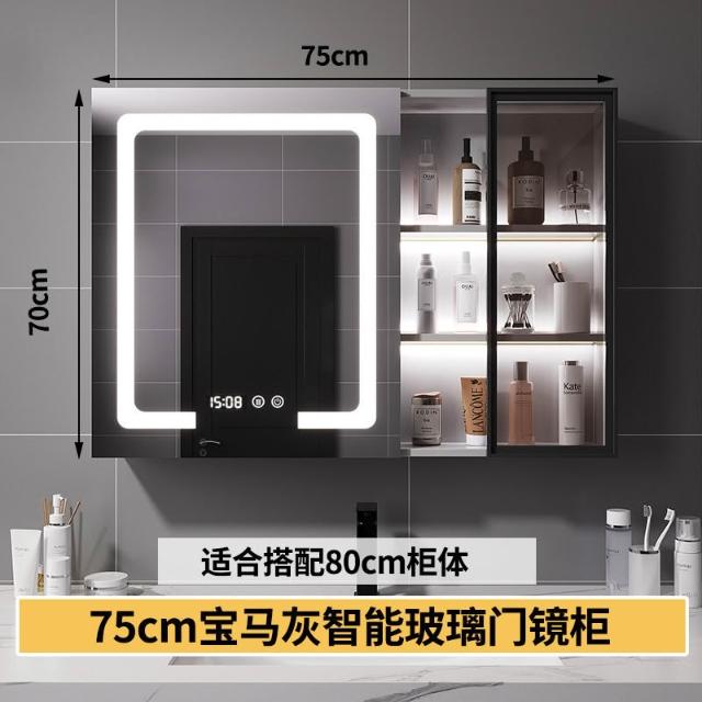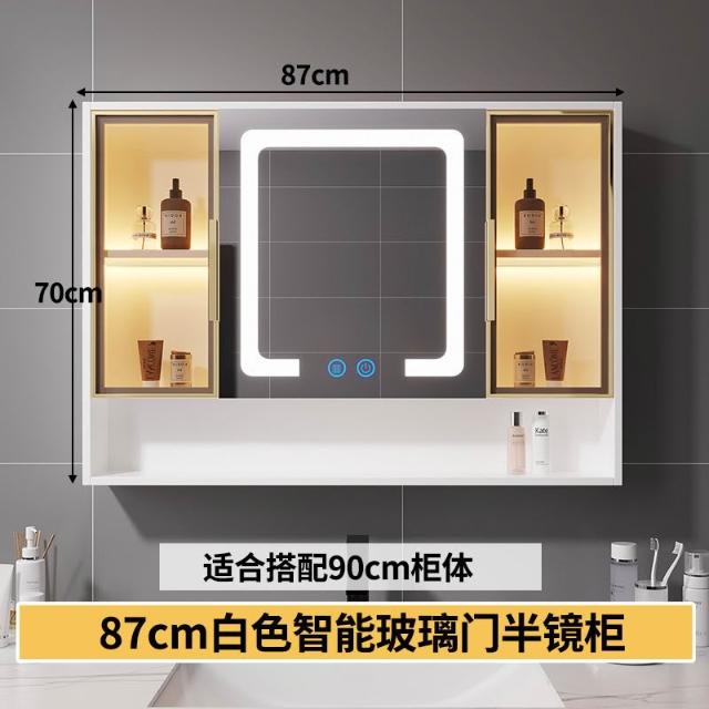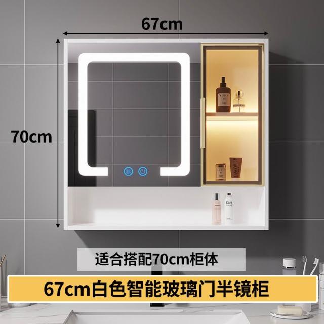 智能浴室鏡櫃 掛墻式玻璃門鏡櫃簡約現代 70cm適用收納一體