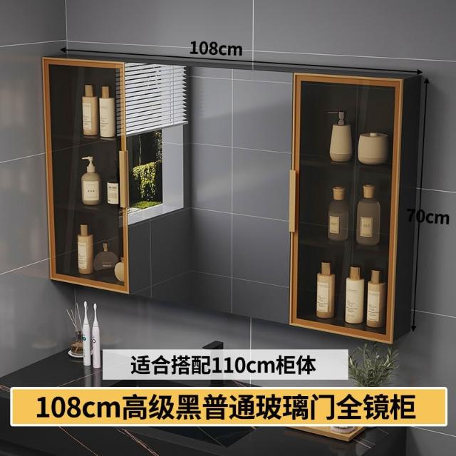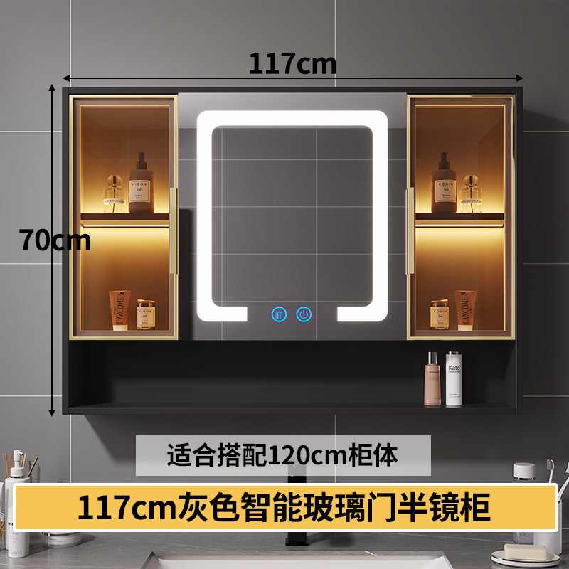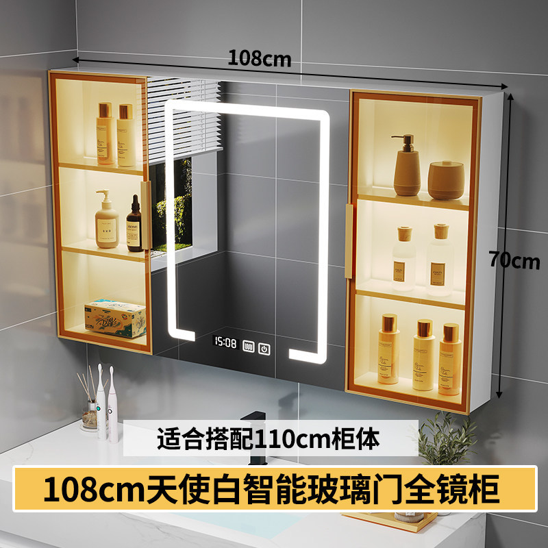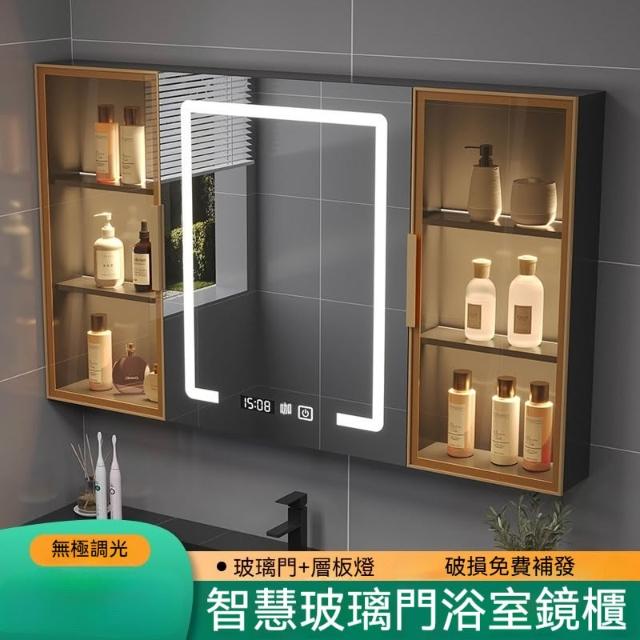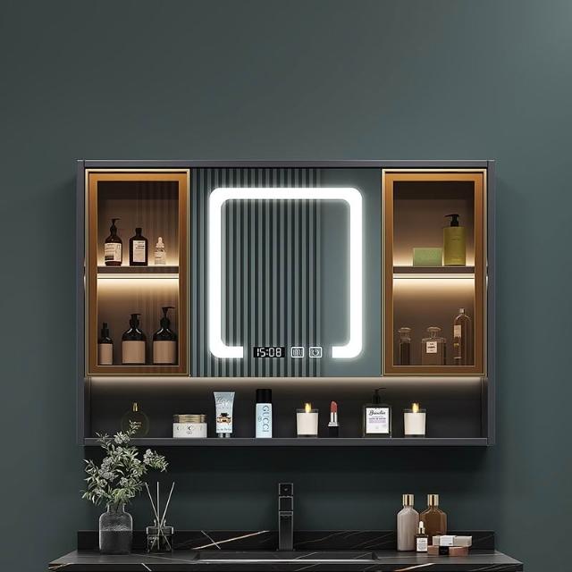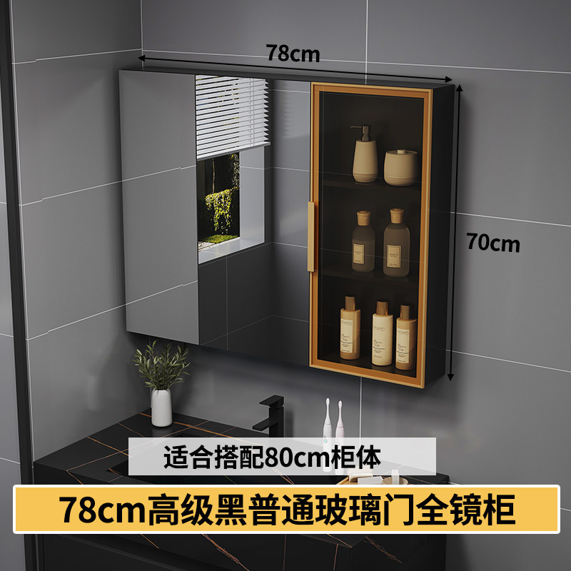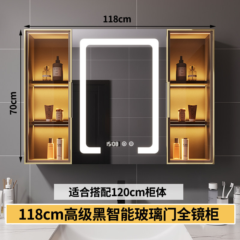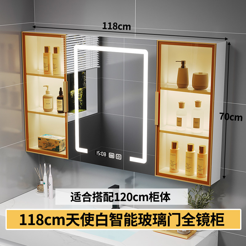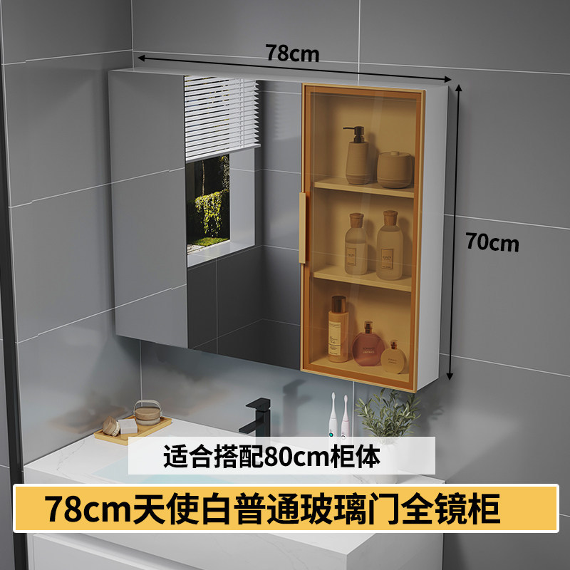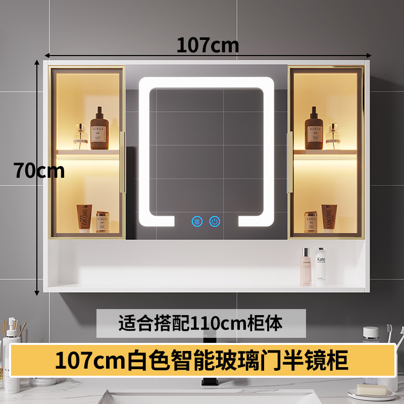 智能浴室鏡櫃 掛墻式玻璃門鏡櫃簡約現代 70cm適用收納一體