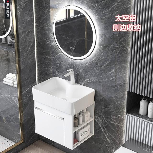 側邊收納太空鋁浴室櫃 小戶型 藝術台盆櫃組合一體 洗漱台洗臉盆