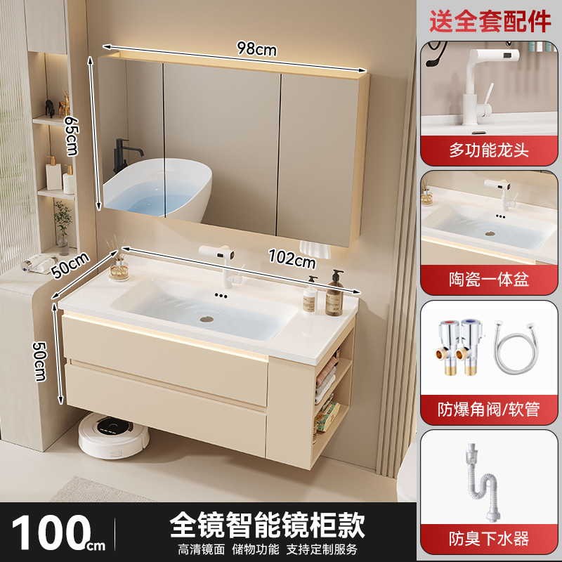 陶瓷一體盆浴室櫃 洗手池 洗臉盆櫃 衛生間洗漱台 洗手台組合 衛浴台盆
