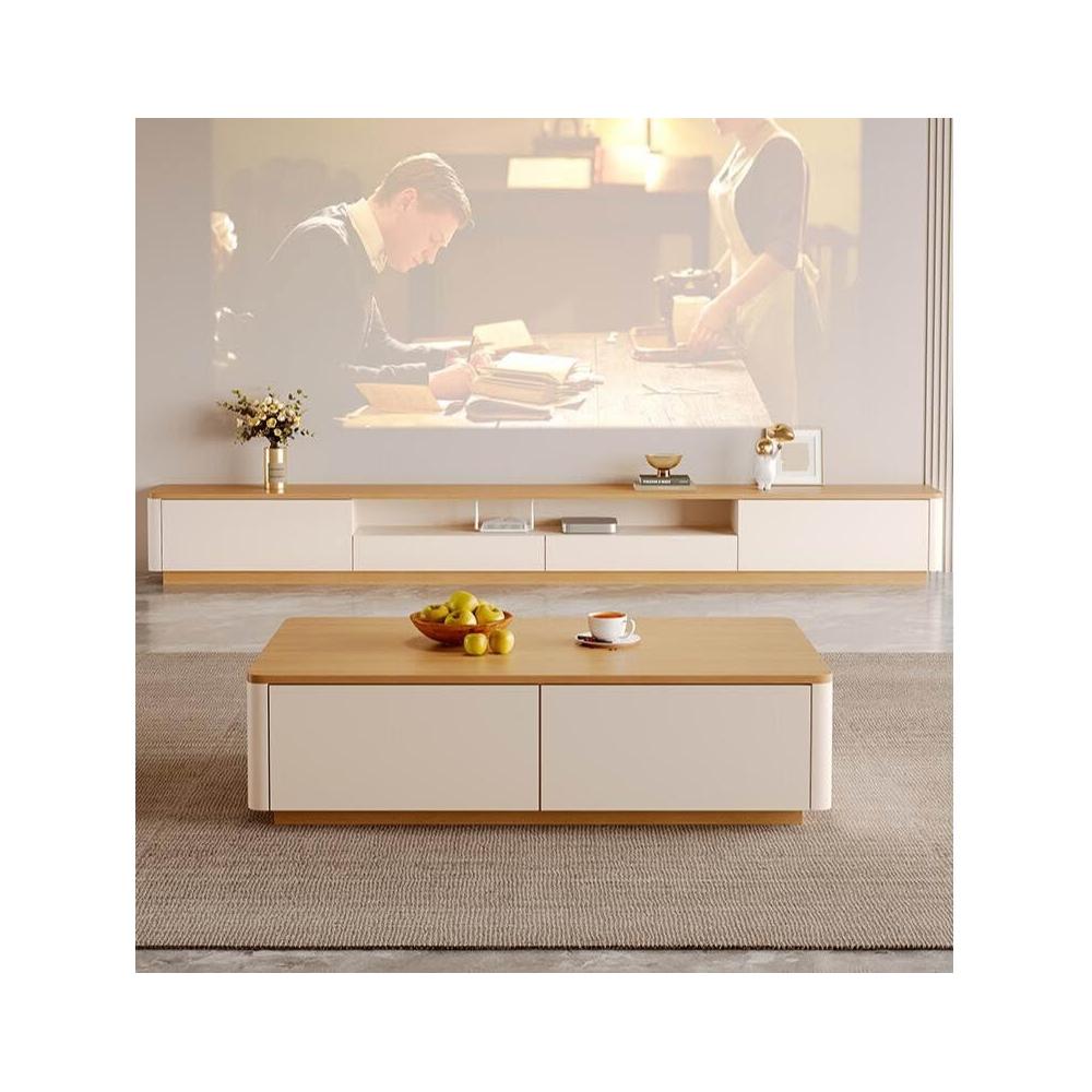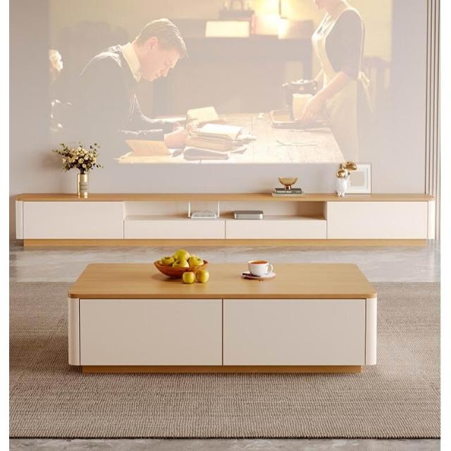 實木 電視櫃 茶几 組合 原木 奶油風 客廳 家用 落地 電視機櫃 小戶型 地櫃