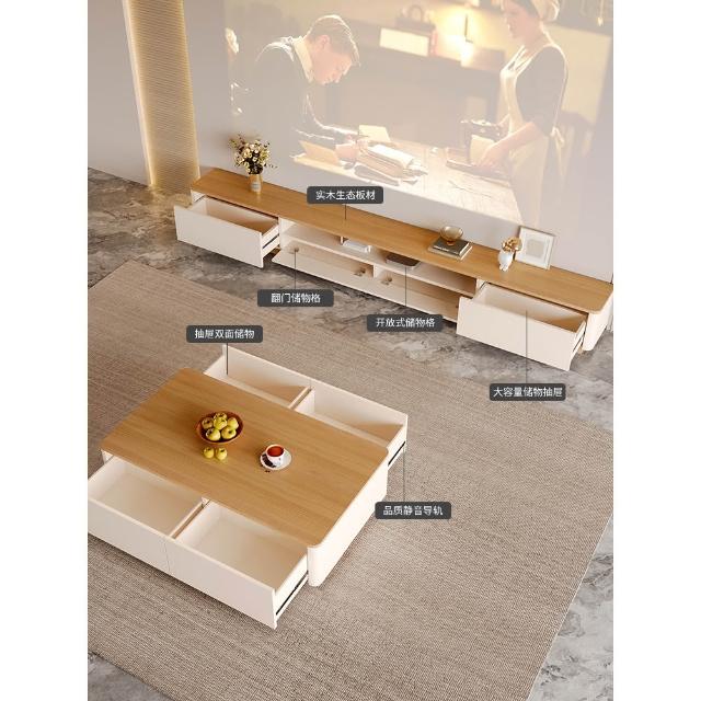 實木 電視櫃 茶几 組合 原木 奶油風 客廳 家用 落地 電視機櫃 小戶型 地櫃