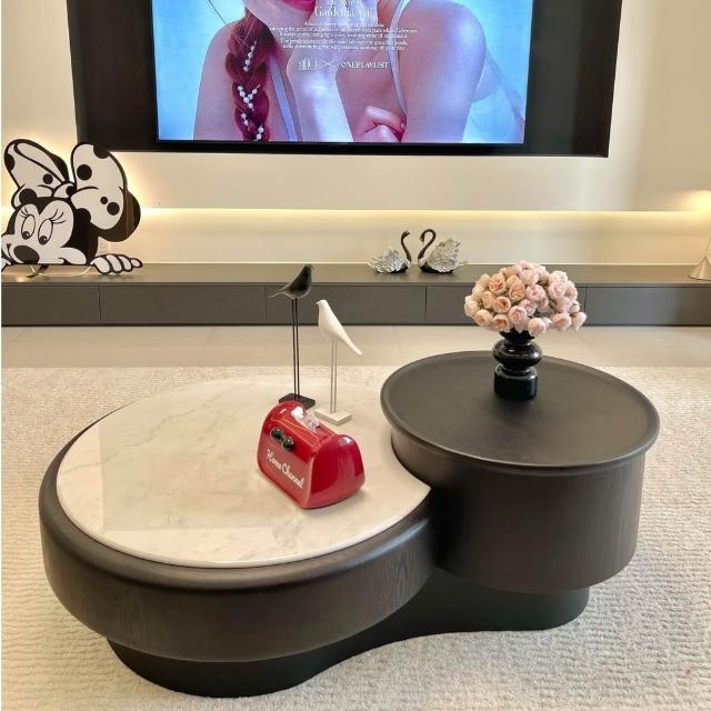 意式極簡 茶幾 輕奢高級感 客廳家用 圓形大理石茶几