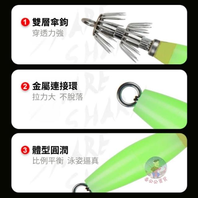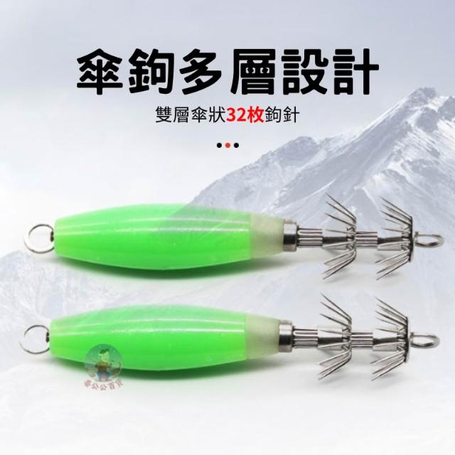 軟絲鉤 夜光 木蝦 路亞 勾 章魚 假餌 魷魚 日規雙層黑傘鉤 鉤 砲管 小卷 軟絲 花枝 透抽