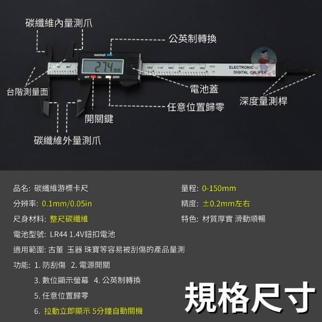 游標卡尺 0-150mm 碳纖維 遊標卡尺 卡尺 數位 游標尺 電子尺 油標卡尺 游標