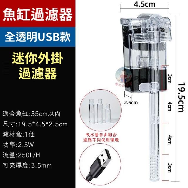 魚缸過濾器 USB透明款 過濾器 外掛過濾器 水族過濾器 魚缸過濾 淨水過濾器 瀑布過濾器 小魚缸過濾