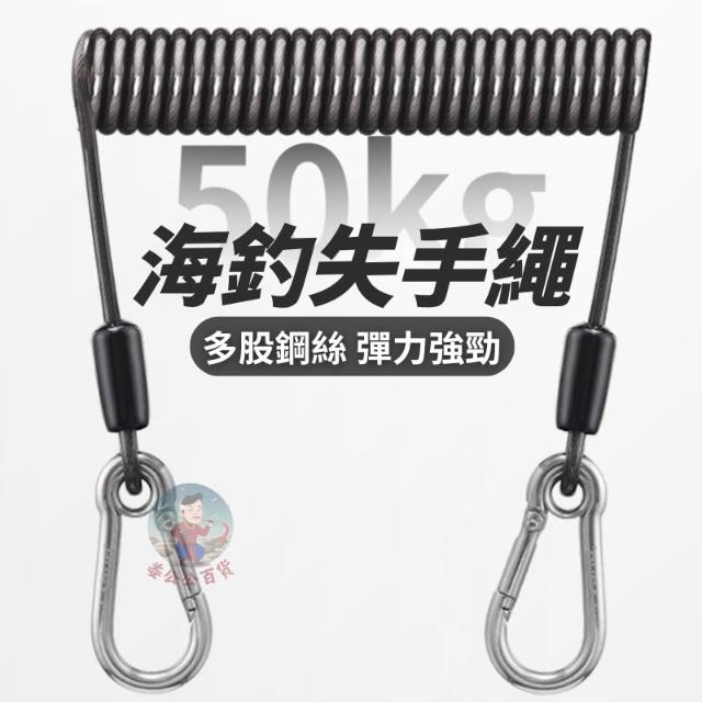 失手繩 1.5米 49股鋼絲 海釣 船釣 工具 路亞 磯釣 防墜繩 餌勺 彈簧繩 岸拋 工具防墜繩