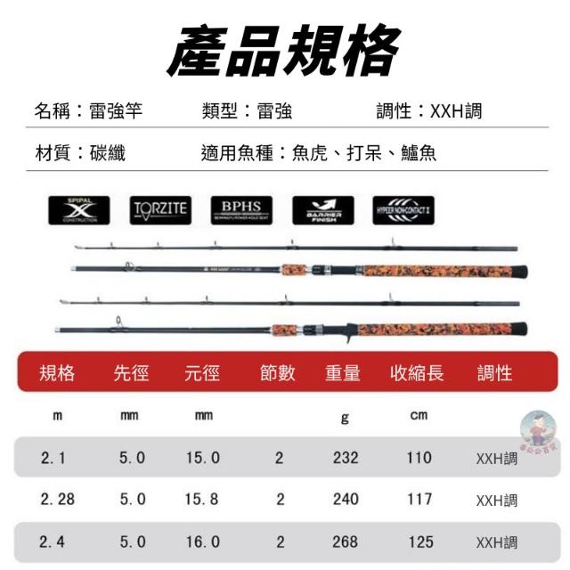 雷強竿 XXH超硬 打虎竿 2.1M 路亞竿 碳纖維 雷蛙 旅竿 多節竿 魚虎卡夢 雷強 槍柄 翹班竿 呆呆