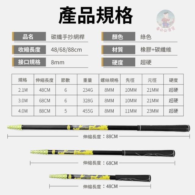 撈網 4米伸縮 撈魚網 抄網 伸縮撈網 手抄網 抄網竿 抄網桿