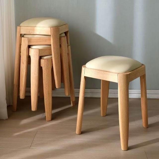 實木餐凳 實木餐椅 可疊加椅子 面包椅 北歐木頭高凳 梳化妝凳 餐桌凳 家用現代簡約方凳 餐飲店椅 可曡放實木凳子 家用聚餐椅