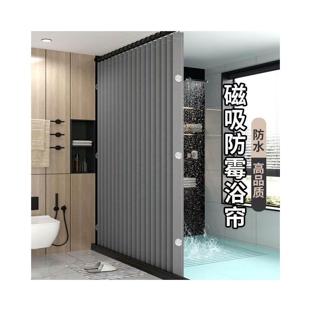 贈送皮質綁帶浴室摺叠浴簾 免打孔防水防霉布 衛生間隔斷淋浴 乾濕分離浴簾 磁吸防霉浴簾 浴室遮擋簾子