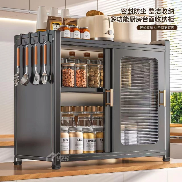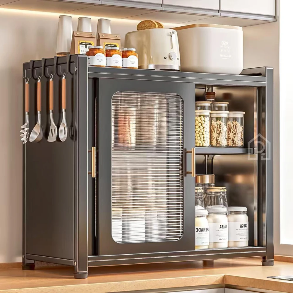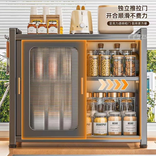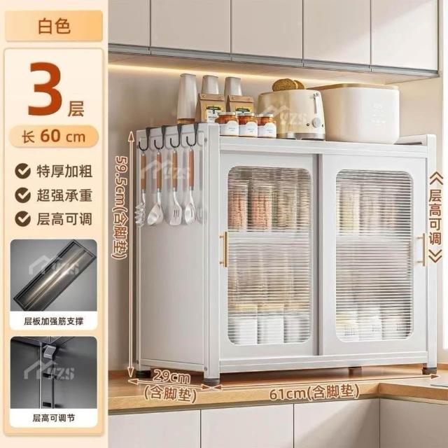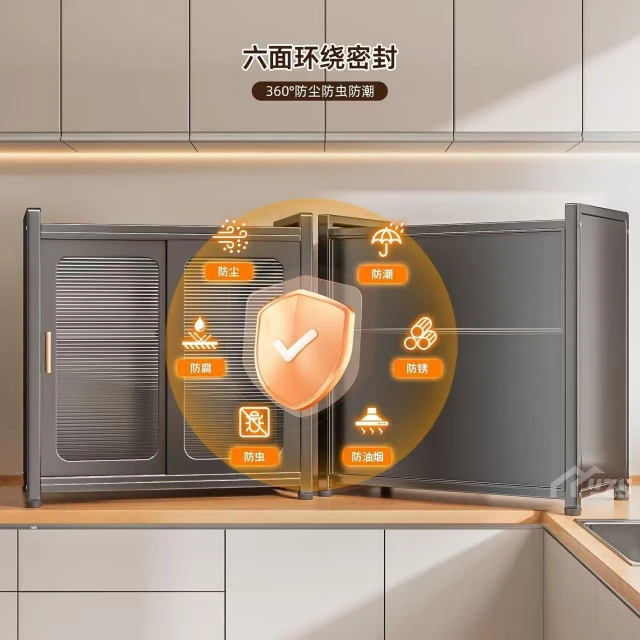 厨房厨具收納櫃 厨房調料品置物架 臺面推拉門防塵櫃 多功能家用儲物櫃 防蟲碗盤餐具收納櫃 多層加厚碗櫃 大容量櫃子