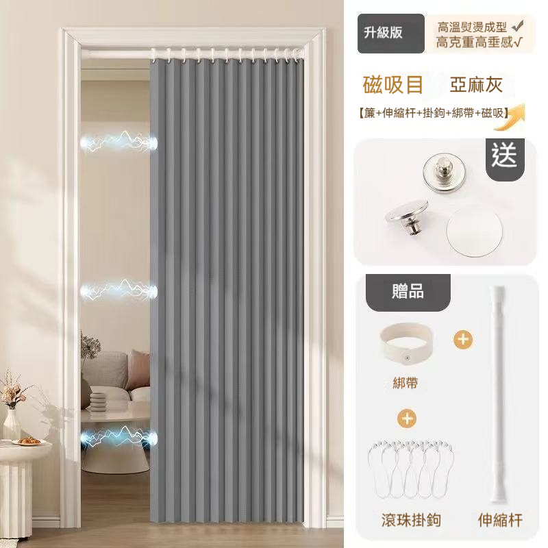 高級感磁吸摺叠門簾 空調擋風門簾 臥室隔斷簾 遮擋簾 衛生間防水簾 廚房簾 冷氣隔簾 一片式門簾 浴室簾 免打孔門簾