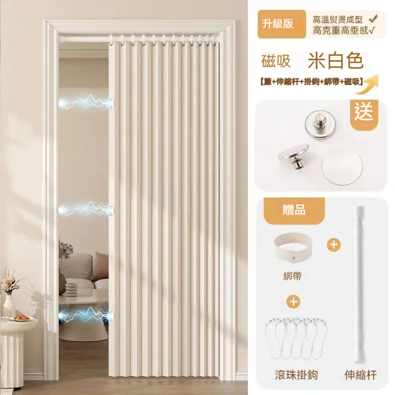 高級感磁吸摺叠門簾 空調擋風門簾 臥室隔斷簾 遮擋簾 衛生間防水簾 廚房簾 冷氣隔簾 一片式門簾 浴室簾 免打孔門簾