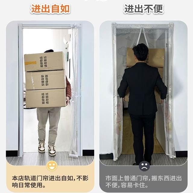 滑軌隔斷簾 厨房門簾 空調防走冷氣黨風隔斷 軌道門簾 免打孔不傷門簾 隔斷門簾 門簾 高清透明EVA門簾