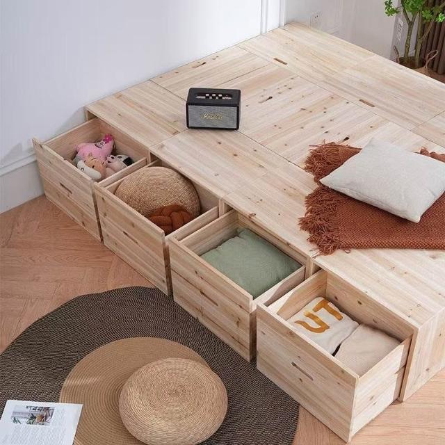 榻榻米拼接床箱 實木床架 拼接床 床架 榻榻米木箱子拼床 實木箱體儲物床 自由組合床箱 加寬飄窗拼接床 儲物櫃 飃窗櫃