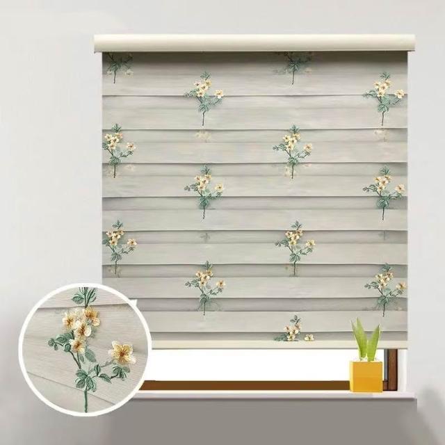 頂配刺綉加厚刺綉百葉窗簾 手拉捲簾 防水防油窗簾 全遮光臥室窗簾 辦公室隔斷窗簾 雙層柔紗簾 遮陽透氣 交替搓光