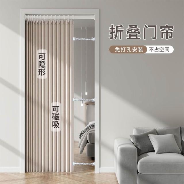 免打孔磁吸摺叠門簾 空調擋風門簾 臥室隔斷簾 衛生間防水簾 冷氣隔簾 浴室簾 加厚遮擋簾