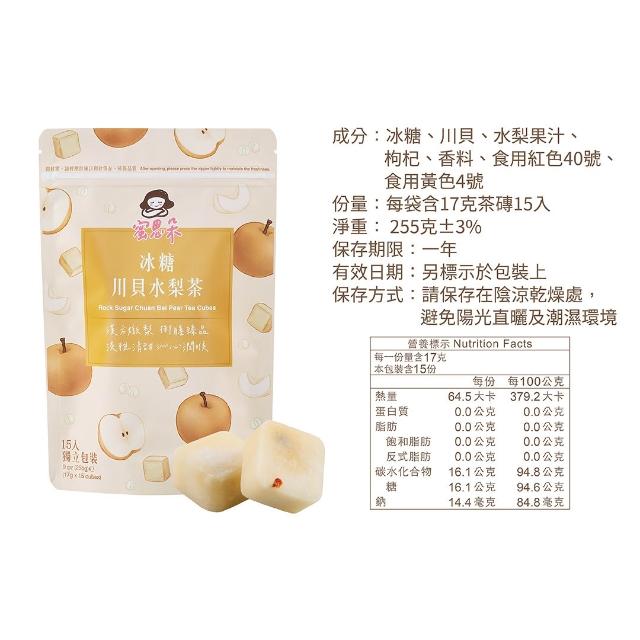 蜜思朵冰糖川貝水梨茶 (17gx15入x1袋) 潤喉茶 水梨汁 清潤飲 水梨飲 川貝 糖磚 茶磚 黑糖磚