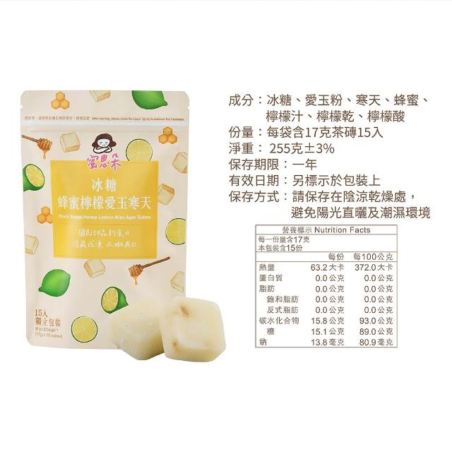 蜜思朵冰糖蜂蜜檸檬愛玉寒天 (17gx15入x1袋) 果凍 愛玉籽 愛玉 糖磚 茶磚 珊瑚草 寒天凍 寒天 海燕窩 檸檬冰磚