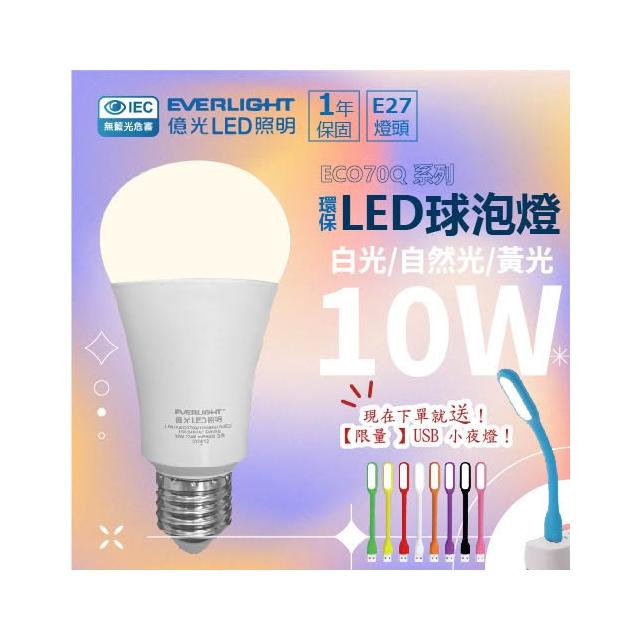 Everlight 億光億光10W全新升級戰鬥版LED燈泡/球泡 E27 無藍光 全電壓 節能省電 1年保固