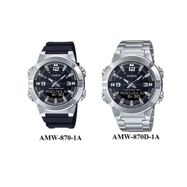 CASIO 卡西歐 【金藏】CASIO 十年電力電話簿記憶功能休閒雙顯膠錶 AMW-870-1A AMW-870D-1A