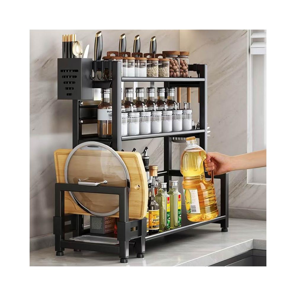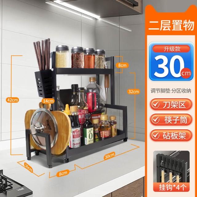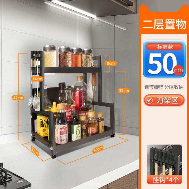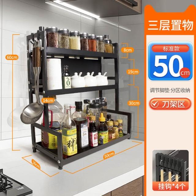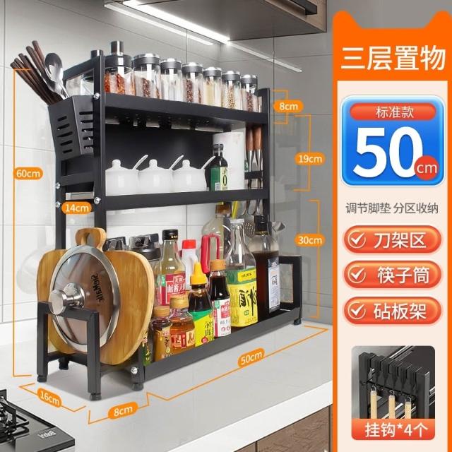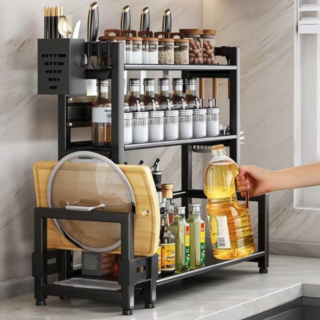 家用碳钢厨房置物架多层台面收纳架多功能调料架子厨房刀架筷子笼