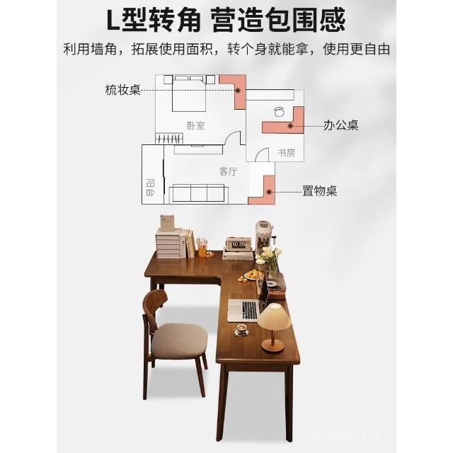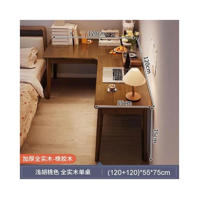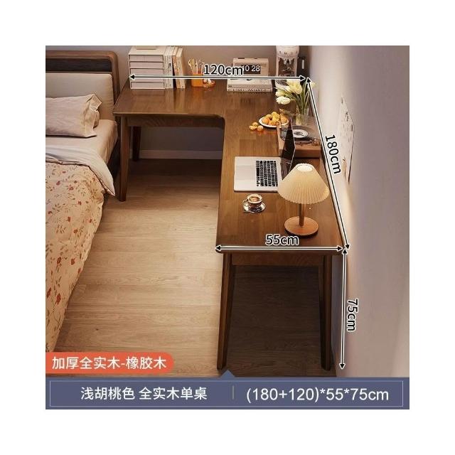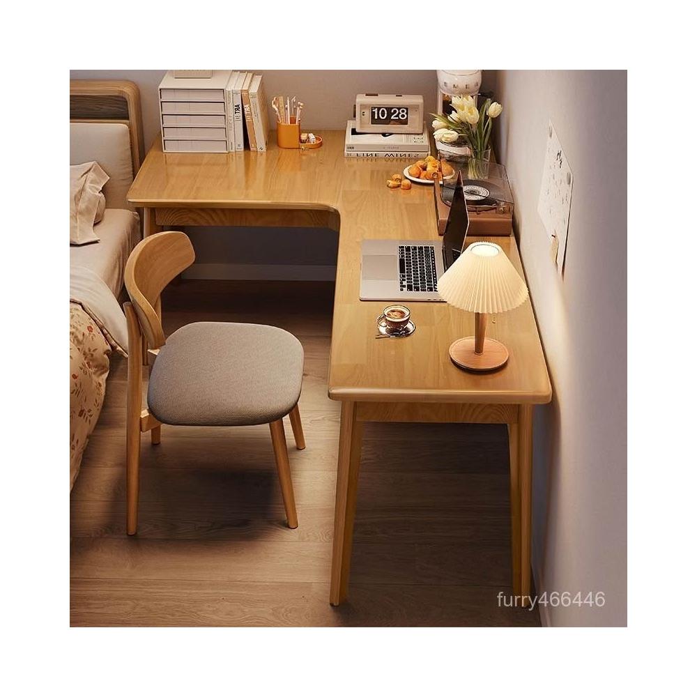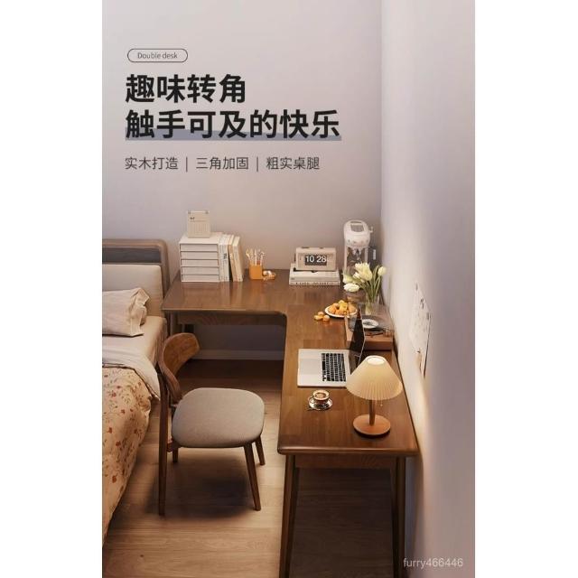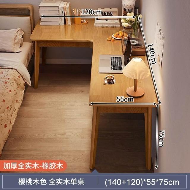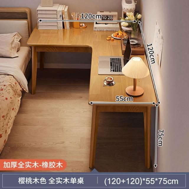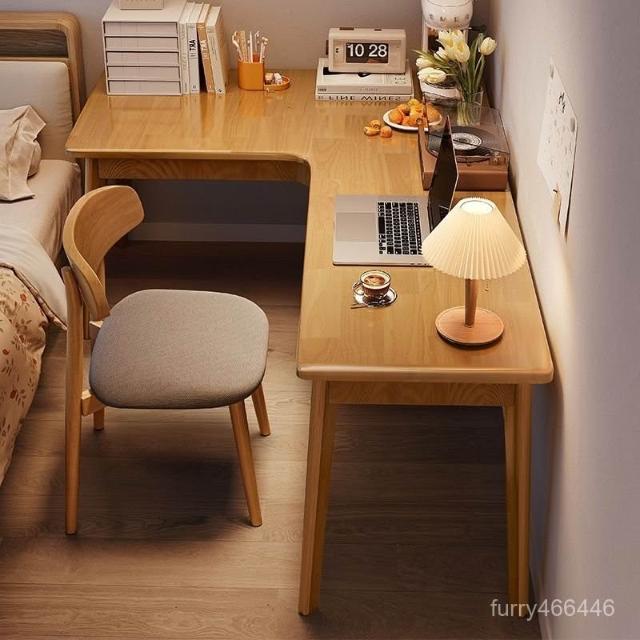 實木轉角書桌學生學習桌寫字臥室家用工作臺式電腦桌拐角L型床邊