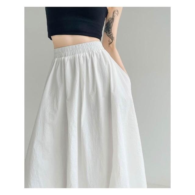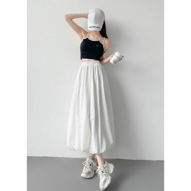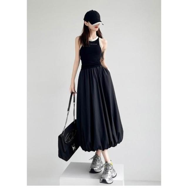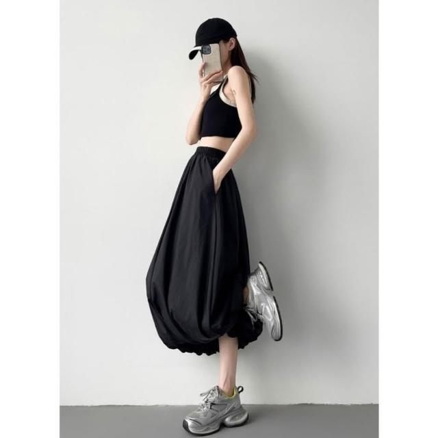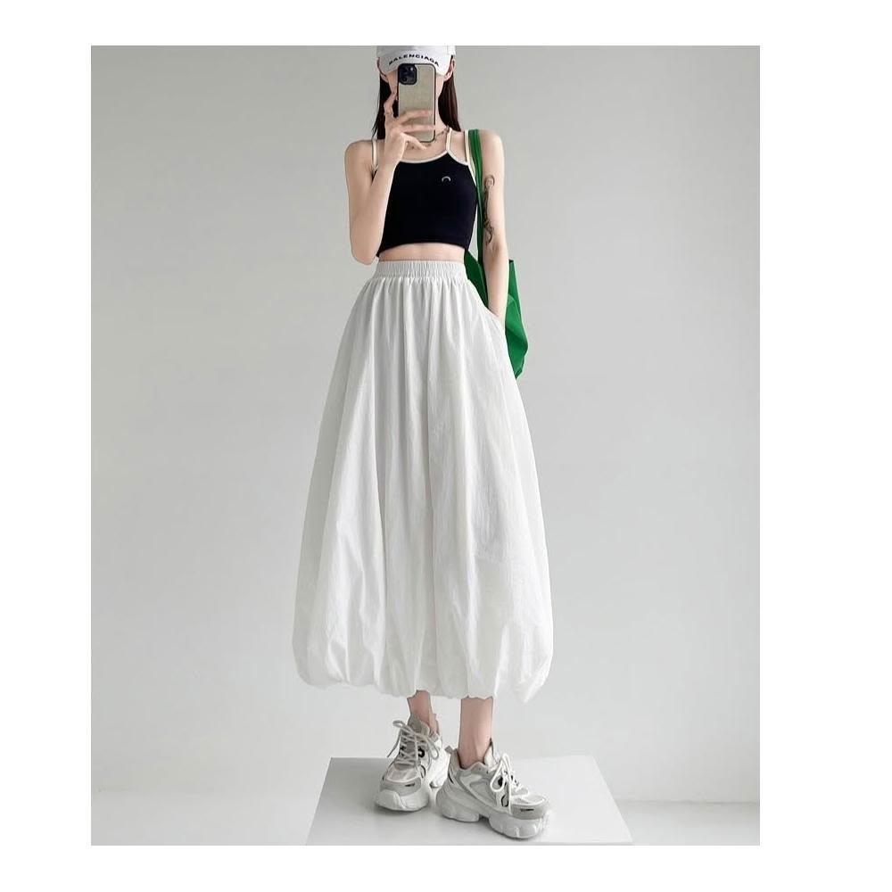 CHILL現貨 韓系溫柔花苞鬆緊長裙 中長款 女生長裙 高腰顯瘦 長裙 高腰裙 溫柔 花苞 氣質長裙