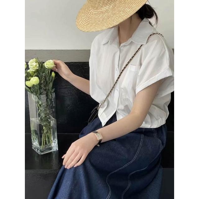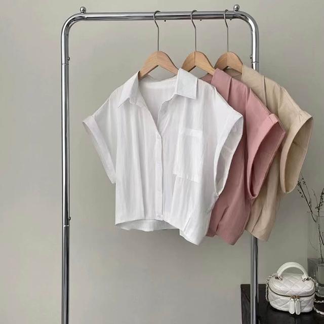 CHILL現貨 慵懶時髦 韓系寬版純色襯衫 女生 排扣上衣 襯衫 短袖襯衫 質感通勤 學院風 襯衫控 預購