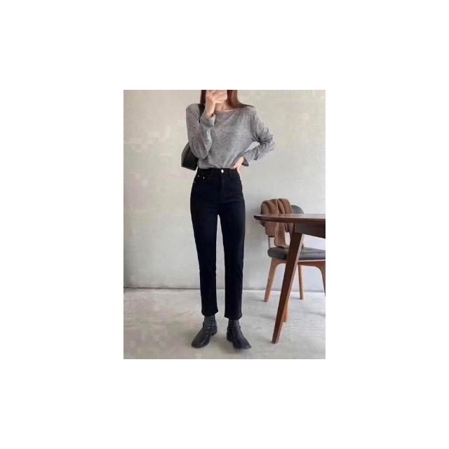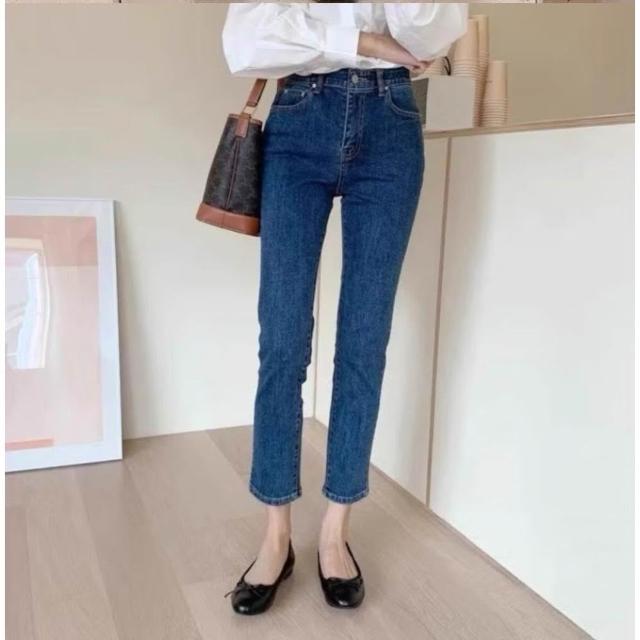 CHILL現貨 FSY韓國瘦腿Q彈薄牛仔褲 韓國牛仔長褲 顯瘦 窄管褲 彈力褲 九分褲 鬆緊 休閒褲 素色直筒褲