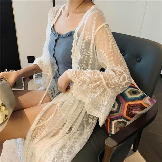 CHILL現貨 春夏夢幻蕾絲外罩蝴蝶衫小外套 外搭 薄外套 小外套 防曬外套 女生外套 罩衫 薄紗 夏天 女生 預購