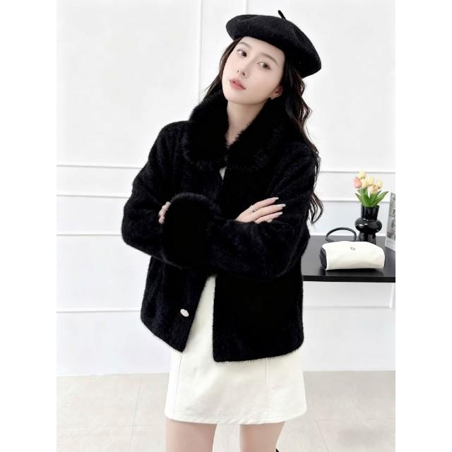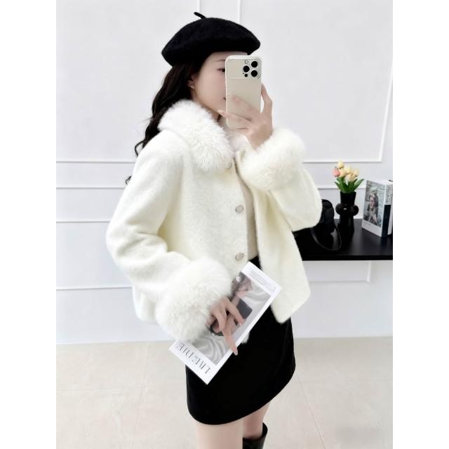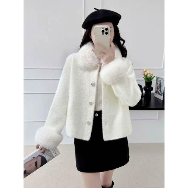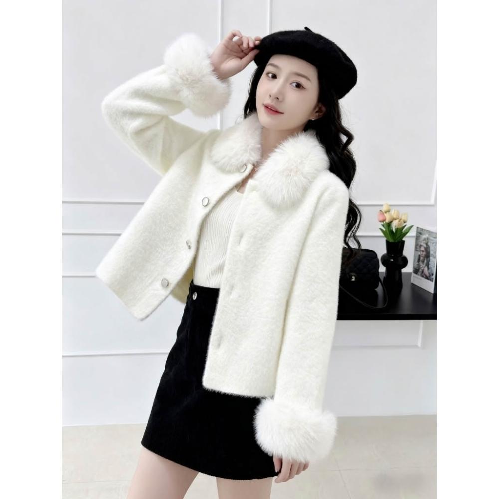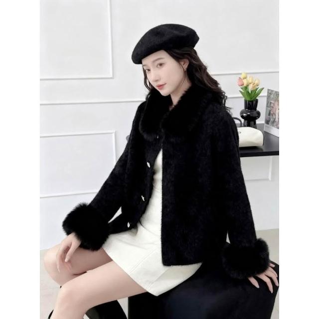 現貨 法式毛毛領兔毛外套 毛呢外套 翻領外套 名媛風外套 韓系短外套 短版外套 預購