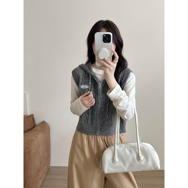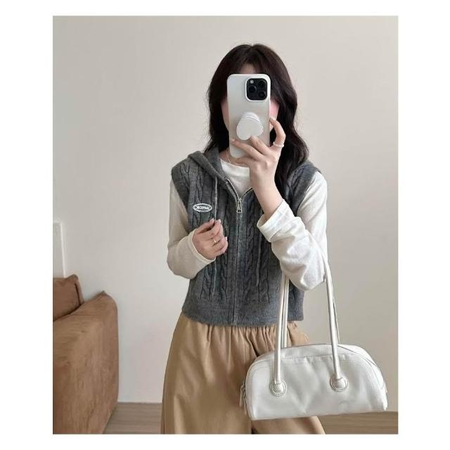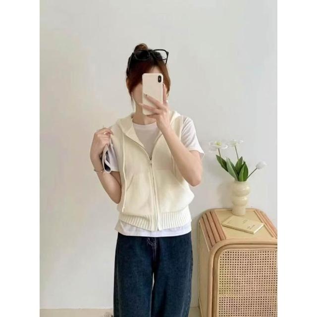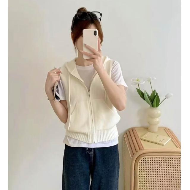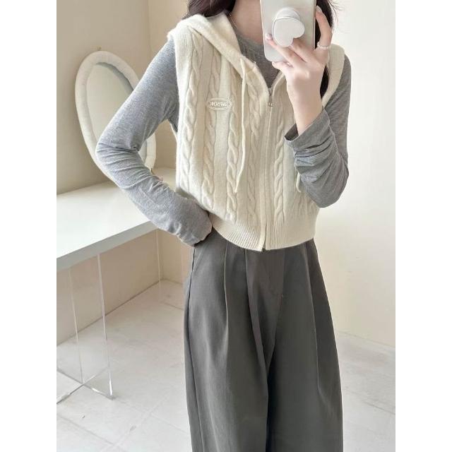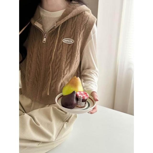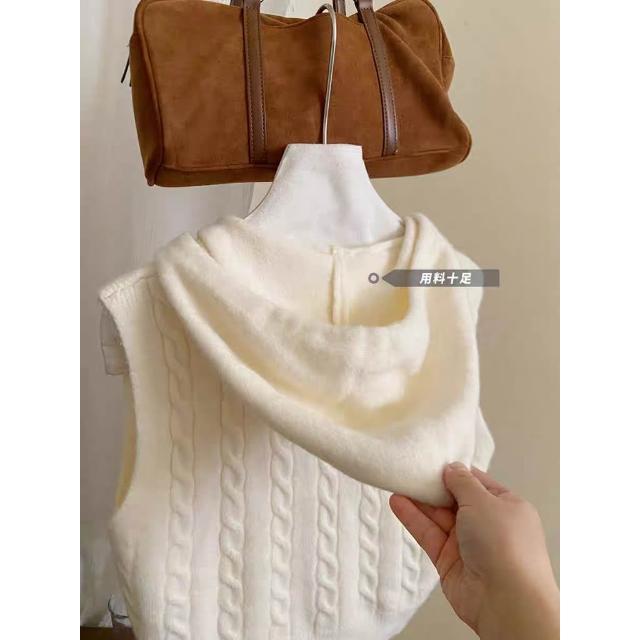 現貨 咖啡廳穿搭連帽麻花針織背心 層次穿搭 連帽背心 麻花針織 韓系背心 無袖毛衣 休閒針織 預購