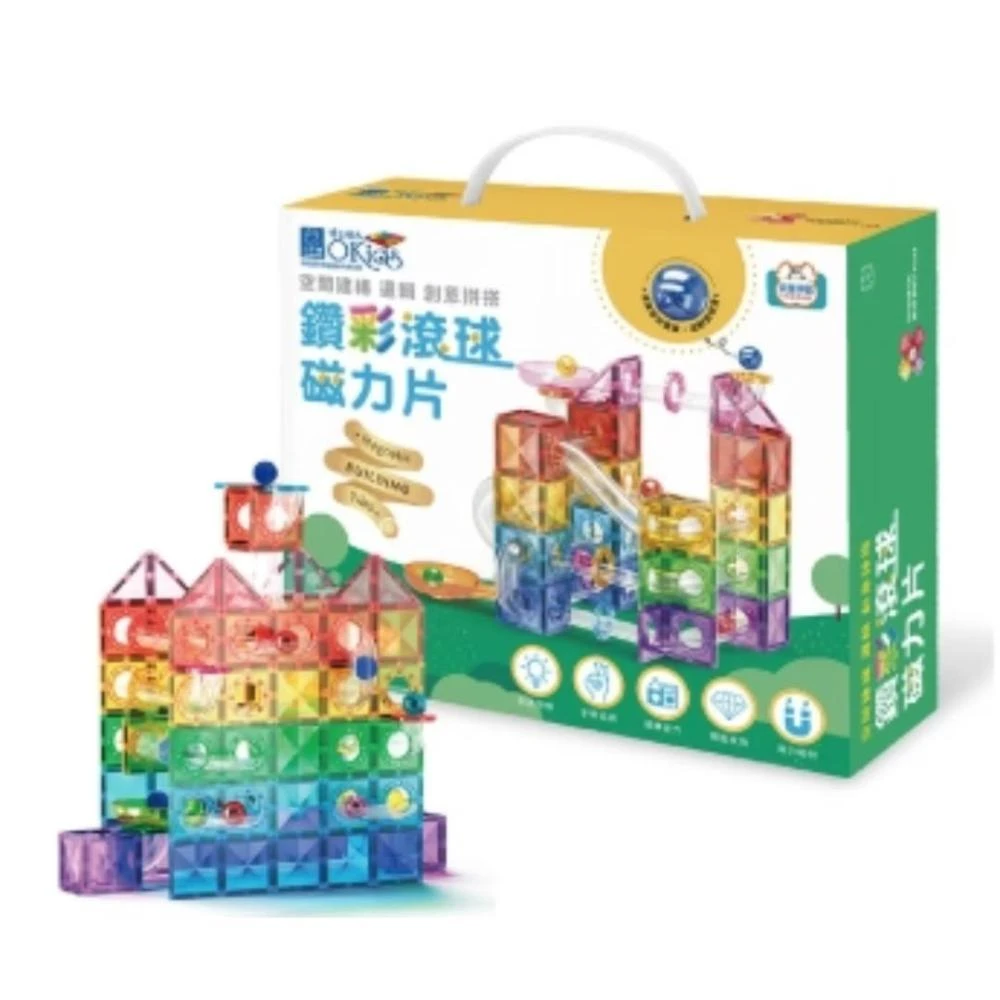 小牛津鑽彩滾球磁力片-115pcs(滾珠軌道/空間建構/STEAM玩具)