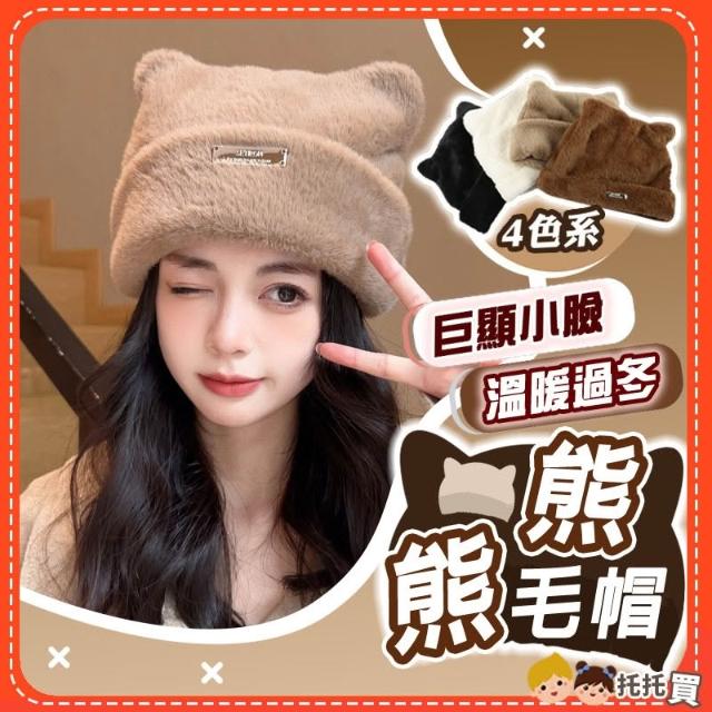 韓國最新熱銷✨修飾臉型❤️ 熊熊毛帽 毛帽 毛帽韓國 小熊帽 毛毛帽 耳朵 毛帽女 大頭圍 保暖帽 短毛帽