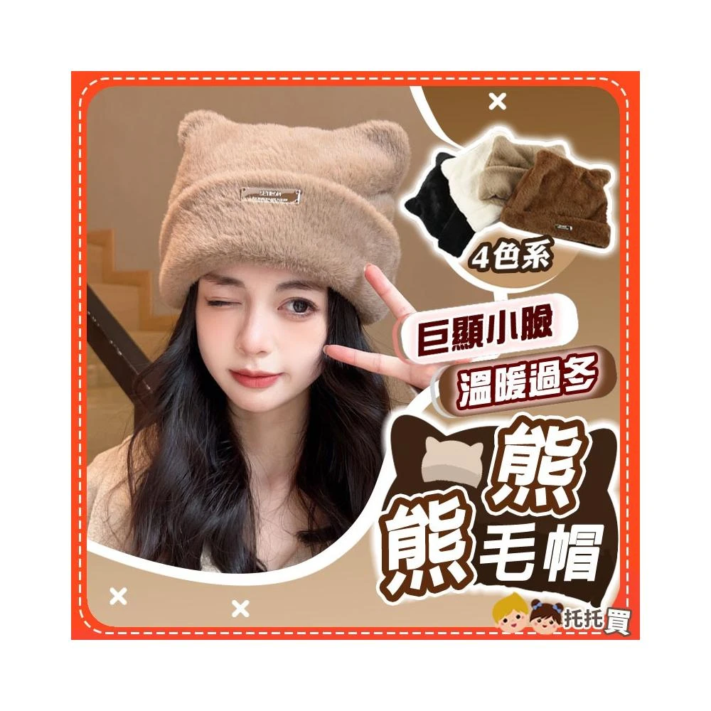韓國最新熱銷✨修飾臉型❤️ 熊熊毛帽 毛帽 毛帽韓國 小熊帽 毛毛帽 耳朵 毛帽女 大頭圍 保暖帽 短毛帽