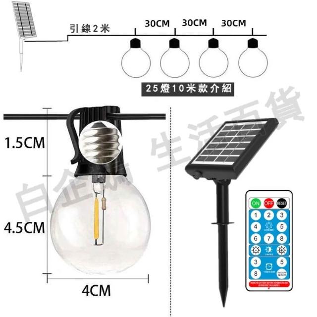 太陽能燈串 G40燈串 950公分25燈 太陽能LED燈串 裝飾燈 露營燈串 防水燈串 仿傳統鎢絲 愛迪生燈泡