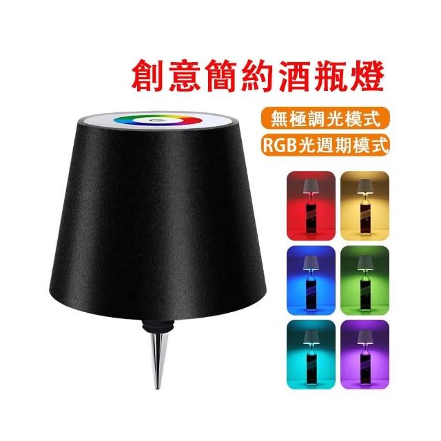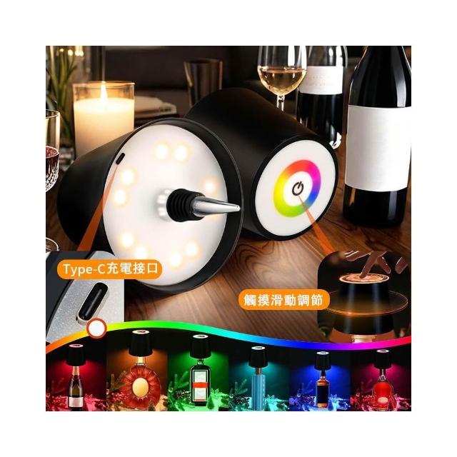 創意簡約酒瓶燈 led創意酒頭燈 嵌入式瓶塞 酒吧 餐廳 三色調光 RGB調光 裝飾 酒瓶檯燈 充電床頭燈