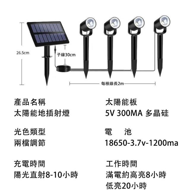 一拖四太陽能投射燈 太陽能燈 太陽能感應燈 太陽能射燈 庭院燈 太陽能插地燈 景觀燈 LED投射燈 照樹燈