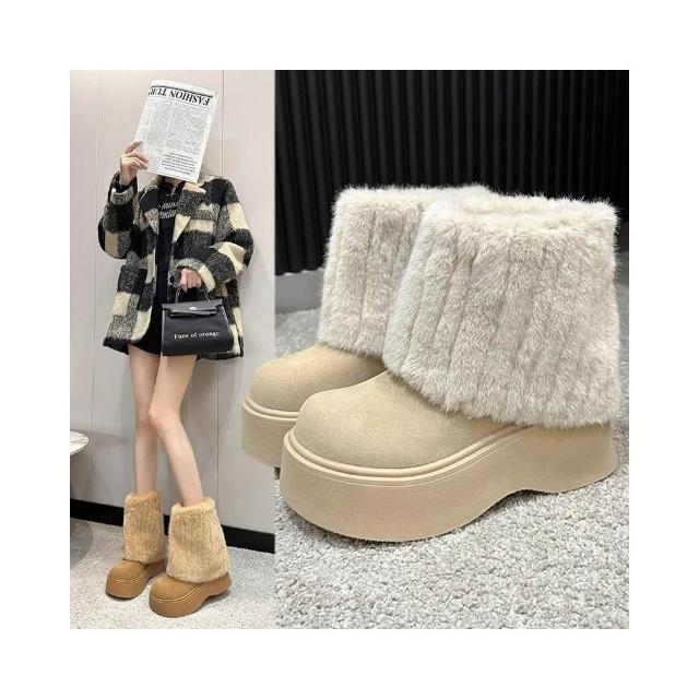 短筒/中筒厚底雪地靴 網紅雪地靴 ️冬季新款厚底短筒 長筒毛毛褲管靴/加絨保暖棉鞋